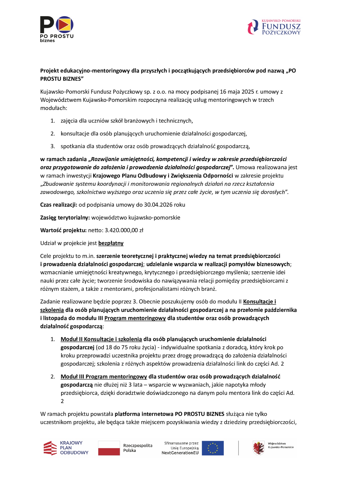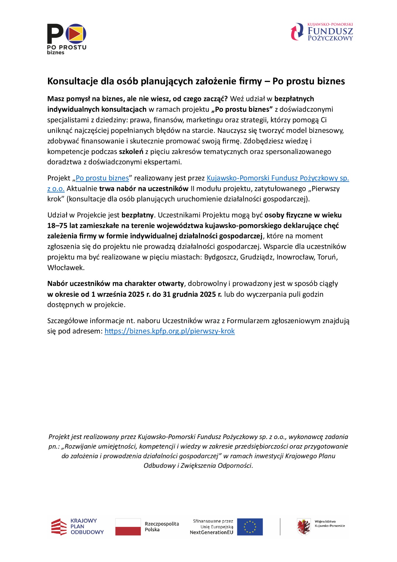 Trwa nabór do projektu „Po prostu biznes” – inicjatywy skierowanej do wszystkich, którzy mają pomysł, ale potrzebują wsparcia na starcie swojej działalności gospodarczej. Skorzystajcie z indywidualnych konsultacji i szkoleń z topowymi ekspertami!
