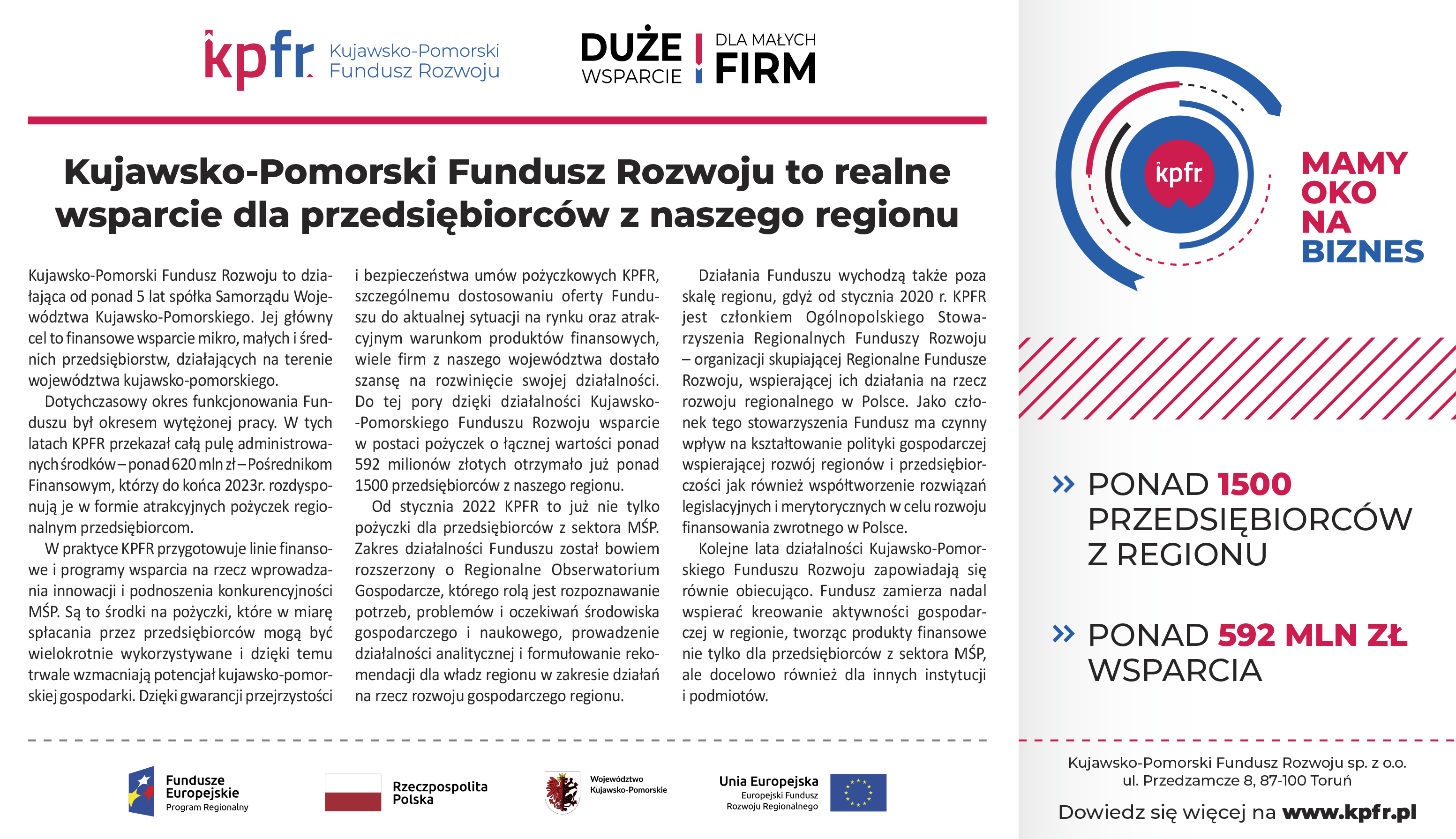 Kujawsko-Pomorski Fundusz Rozwoju - informacje o produktach finansowych w postaci pożyczek dla sektora MŚP