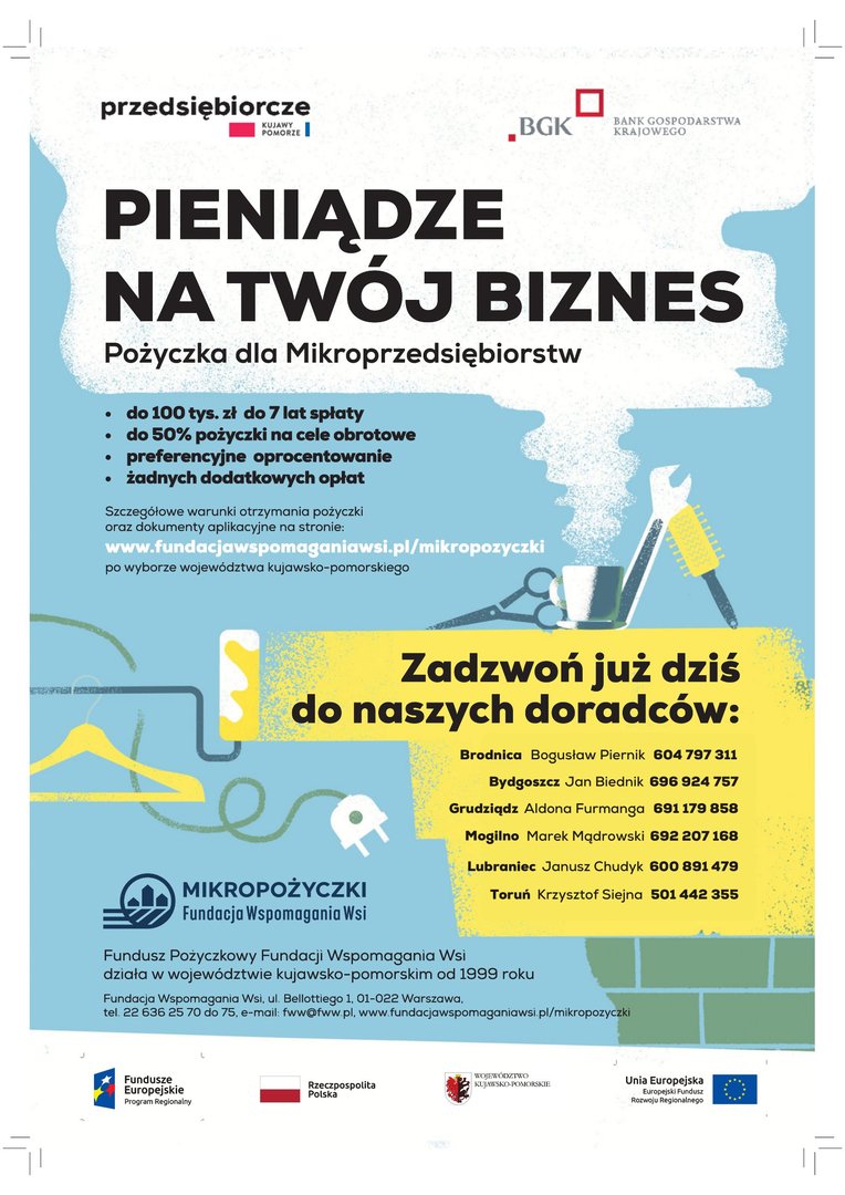 „Pożyczki dla mikroprzedsiębiorstw z województwa kujawsko-pomorskiego”.
