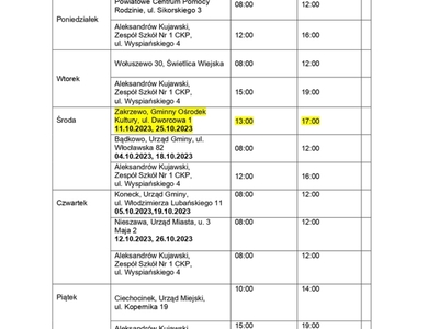 Harmonogram pracy punktów npp na październik