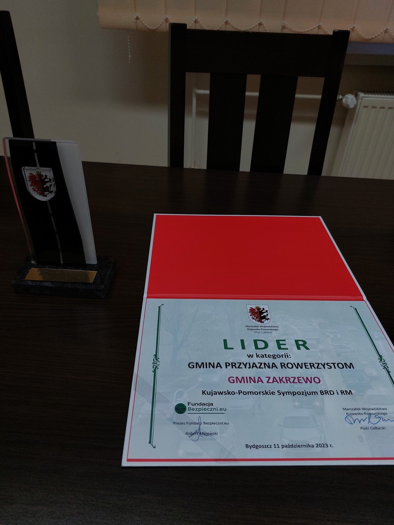 Gmina Zakrzewo otrzymała wyróżnienie Lider BRD w kategorii Gmina przyjazna rowerzystom. 11 października 2023 r. w auli Politechniki Bydgoskiej im. Jana i Jędrzeja Śniadeckich odbyło się wręczenie nagród. Jedną z trzech w tej kategorii odebrał Wójt Gminy Zakrzewo Pan Artur Nenczak.