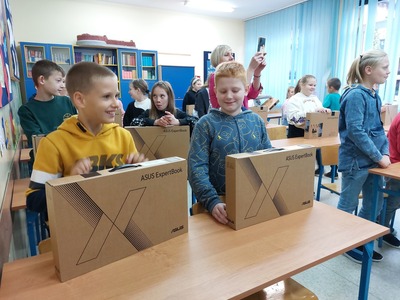 W związku z wdrażaniem ustawy mającej na celu wsparcie rozwoju kompetencji cyfrowych uczniów i nauczycieli, w dniu dzisiejszym Wójt Gminy Zakrzewo Pan Artur Nenczak, Przewodniczący Rady Gminy Zakrzewo Pan Tadeusz Lipowski oraz Przewodniczący Komisji Wychowania, Oświaty, Kultury, Sportu i Spraw Socjalnych Pan Marcin Szopski, przekazali laptopy uczniom klas czwartych Szkoły Podstawowej im. Orła Białego w Sędzinie oraz Szkoły Podstawowej im. Polski Niepodległej w Zakrzewie.