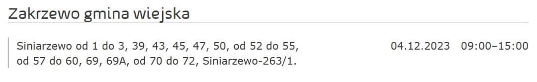 W dniu 4.12.2023 w godz. 9.00 - 15.00