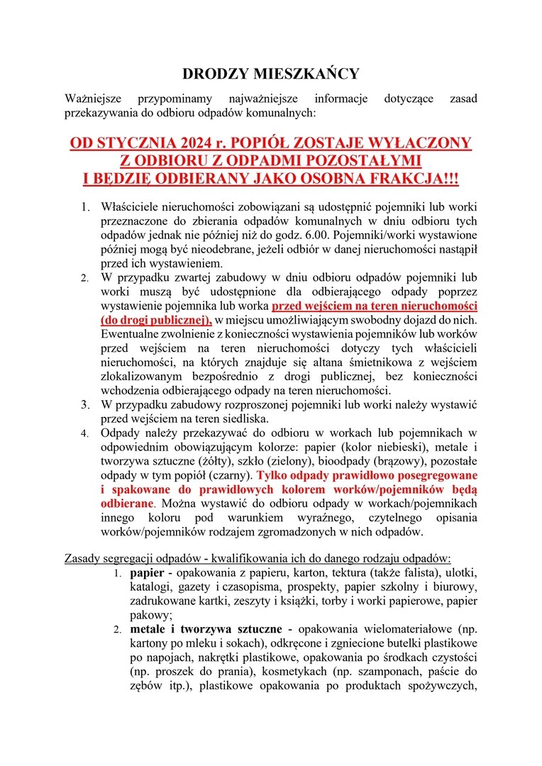 Wiadomości na temat odbioru odpadów komunalnych w 2024 roku