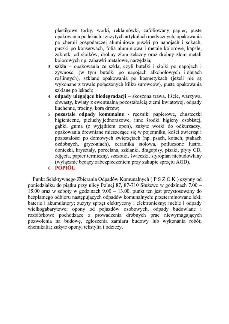 Harmonogram odbioru odpadów Styczeń - Czerwiec 2024